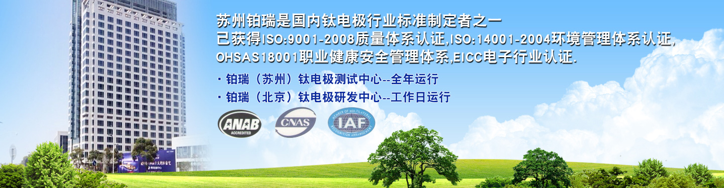 蘇州市鉑瑞工業(yè)材料科技有限公司是一家擁有自營進(jìn)出口權(quán)的高新技術(shù)民營企業(yè),專業(yè)致力于混合金屬氧化物涂層鈦電極的生產(chǎn),向全球用戶提供高品質(zhì)的鈦陽極產(chǎn)品,是全球領(lǐng)先的鍍鉑鈦陽極制造企業(yè)。同時提供先進(jìn)的電鍍、電解技術(shù),推進(jìn)電化學(xué)領(lǐng)域的高效、節(jié)能與潔凈。